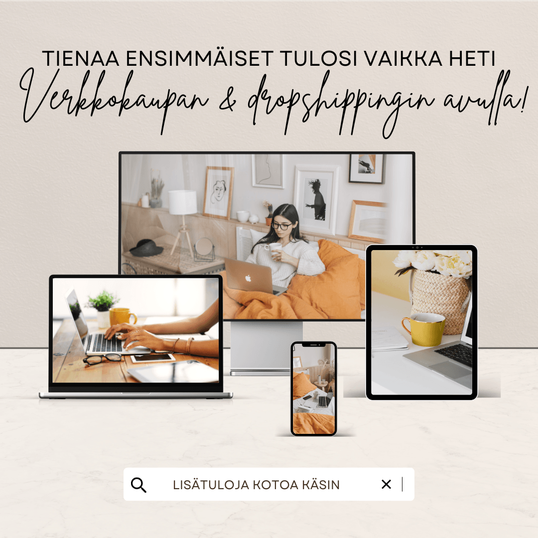 Sinulle, joka haaveilet lisätuloista, omasta verkkokaupasta ja vapaammasta tavasta tehdä töitä – ilman monimutkaisuutta, isoa taloudellista panostusta tai pelkoa epäonnistua.