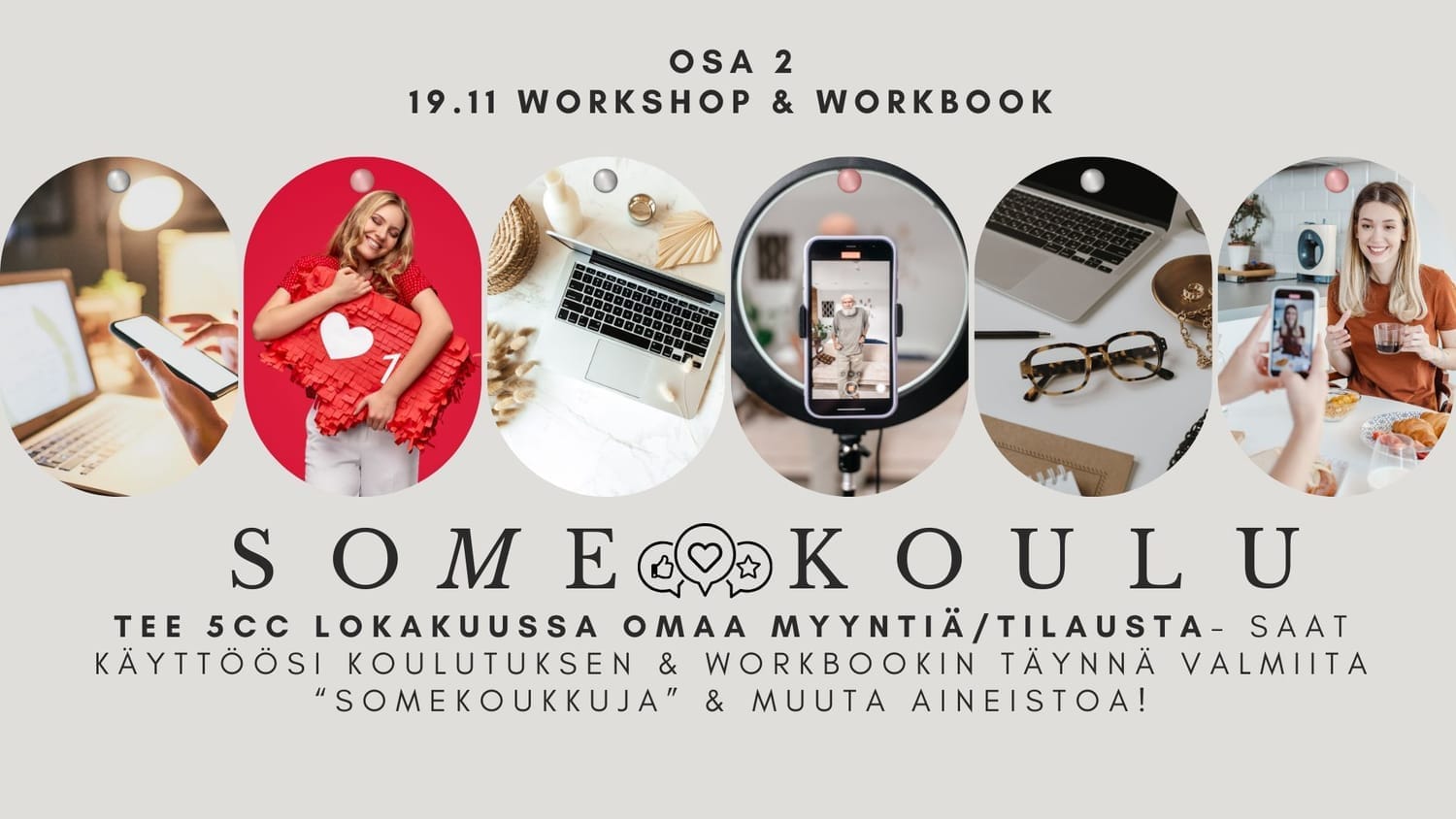 📘 Opit ovat yksinkertaisia ja heti toteutettavia somekoukkuja – ja koulutus sekä workbook ovat ILMAISET, kun pätevöidyt mukaan tekemällä 5CC lokakuussa.